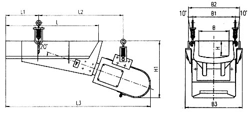 | 类型 | 型号 | 生产率 (t/h) | 给料粒度 (mm) | 双振幅 (mm) | 振动频率 (次/分) | 供电电压(V) | 电流(A) | 有功功率 (KW) | 重量 (kg) | ||